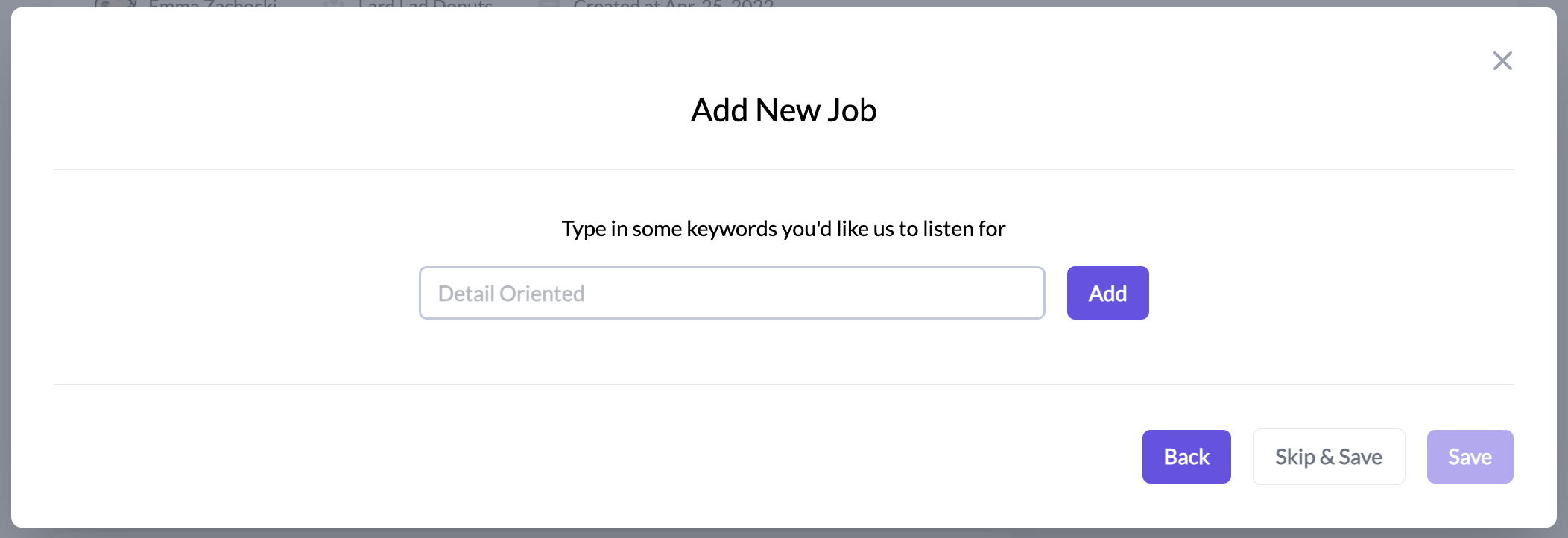 When reviewing a candidate, you'll see a star with a number on the candidate record indicating how many keywords this candidate mentioned.